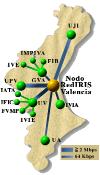 Este plano representa las conexiones informaticas existentes en estos momentos en la Comunidad Valenciana.