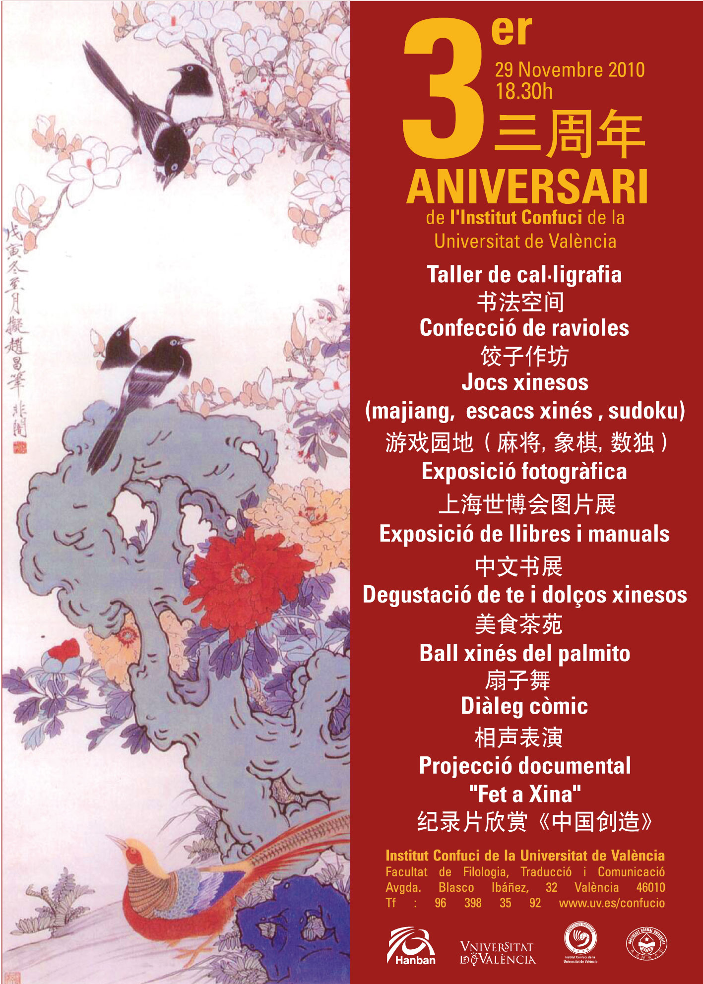 CEL.LEBRACIÓ del 3er ANIVERSARI de l'INSTITUT CONFUCI Dilluns, 29 de novembre, 2010 a les 18.30h