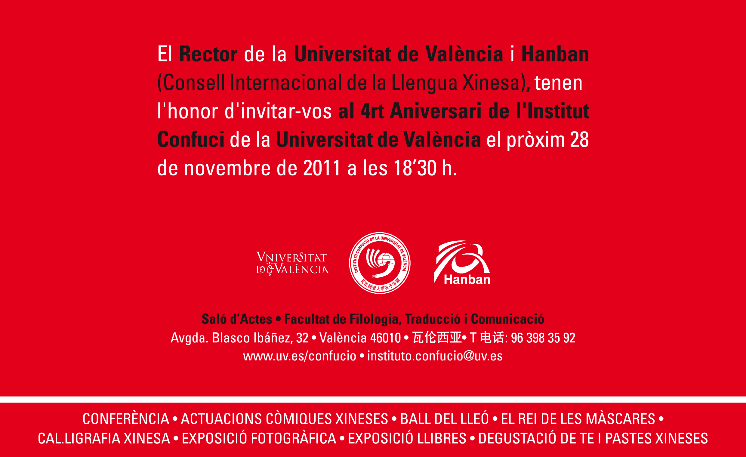 L'Institut Confuci de la Universitat de València vos desitja un Feliç Any Nou 2011