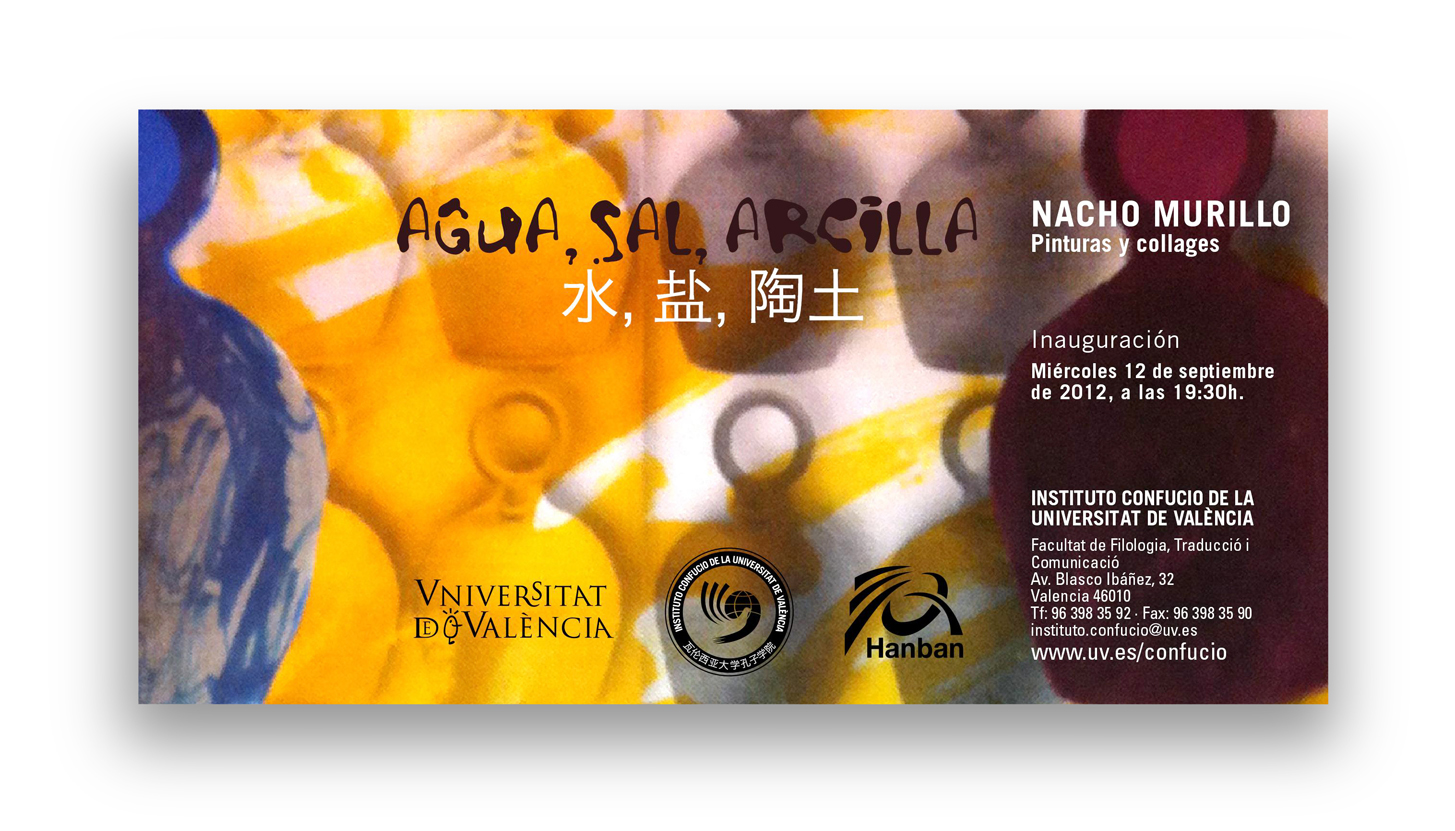 Exposició: "Cal.ligrafies de la malaltia" amb la col.laboració de l'Institut Confuci. Per què els metges escriuen de manera tan especial? Contrast amb la cal.ligrafia xinesa Dimarts 11 de setembre a les 20 h. Palau Cerveró, Plaça Cisneros. ![]() Exposició a l'Institut Confuci. Nacho Murillo presenta la seua nova obra "Agua, sal, arcilla" Pintures i collages. Paralelismes entre Xina i Espanya. Dimecres 12 de setembre. 19:30 h. ![]() Conferència: "Acupuntura Clàsica Neijing" pel Dr. Edward Neal Dimarts, 19 de juny de 2012 18:30 h. Facultat de Filologia, Traducció i Comunicació. Avda Blasco Ibañez, 32 Valencia Saló de Graus. *la conferència se impartira en anglés amb traducció a l'espanyol ![]() Curs de Qigong (Tècniques d'autoregulació Tradicionals Xineses ) Matrícula oberta www.instituto-confucio.com