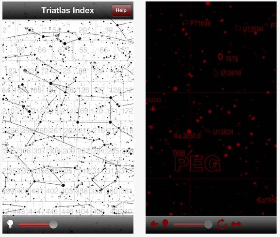 Norbert Schimdt, a German programmer, developed an application initially for iPhone and later for iPad to make the C-set available in these devices. We granted him permission as far the application was free (as the atlas is and has to be). He has built an excellent application that makes the use of the atlas in the field a truly joy. It is relatively modest in size (400 Mb), navigable (passing charts with the neighboring charts border tags and also through an index chart), red color with controllable brightness (or white background), compact and quick to use. The link to the apple store can be found here. He developed it under the premise that it it would be free for everybody, and we stand here our wish it has to be free and altruist as the TriAtlas itself.