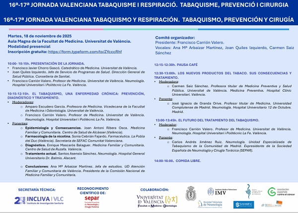 València la 16.ª-17.ª Jornada Valenciana sobre Tabaquismo y