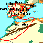 Los reinos cristianos habían aprovechado la crisis del imperio almorávide para avanzar sus fronteras. Alfonso I de Portugal había instalado a los caballeros Templarios en el sur de su reino, y con su ayuda conquistó Lisboa. Luego fundó él mismo su propia orden de caballería, la orden de Avís, para combatir a los musulmanes, que seguía la regla del Císter. Alfonso VII de León y Castilla, junto con García V Ramírez de Navarra y Ramón Berenguer IV de Aragón y Cataluña tomaron Almería.