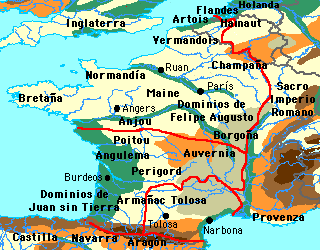 Occidente el rey Felipe II de Francia dominaba ya toda la parte