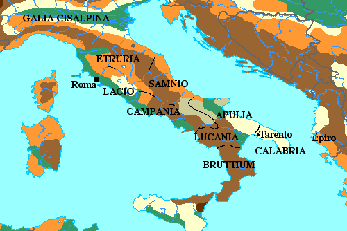 Guerra Samnita. Al sur del Samnio había dos regiones: