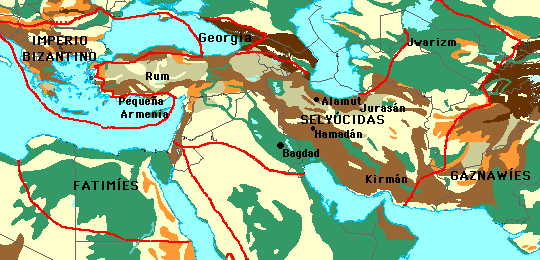 En el mundo islámico, la mayor potencia eran los turcos selyúcidas, que eran sunníes y tenían más empeño en combatir a los chiitas que a los cristianos. Los chiitas habían perdido ante los turcos Mesopotamia y, más recientemente, Siria y Palestina. Un líder ismailí llamado Hasan ibn al-Sabah, que había abandonado la corte del califa fatimí al-Mustansir unos años antes, tomó la fortaleza de Alamut, al sur del mar Caspio, en un valle rodeado de montañas a unos 110 kilómetros al norte de Hamadán. Allí fue conocido como el Viejo de la Montaña, y desde allí se dispuso a combatir a los sunníes. Se cuenta que hacía mascar hachís a sus adeptos y que luego les explicaba las alucinaciones que tenían como visiones del cielo, donde entrarían inmediatamente si morían cumpliendo su deber (o sea, las órdenes que recibieran). Sus seguidores fueron conocidos como los hassasiyyin (ebrios de hachís) o, lo que es lo mismo, los asesinos.