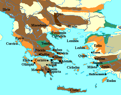 Grecia progresaba muy lentamente. No hacía mucho que Homero había compuesto sus dos famosos poemas: la Ilíada y la Odisea, rememorando para los señores dorios las glorias de la era micénica. La vida seguía siendo dura. La vida en las polis (o ciudades-estado) condicionó fuertemente la evolución de la sociedad griega. La figura del rey perdió relevancia (en una ciudad pequeña y pobre, el rey no podía tener grandes atribuciones, ni hacer grandes ostentaciones). En muchas polis llegó incluso a desaparecer, y el gobierno quedaba en manos de asambleas de nobles (la aristocracia o gobierno de los mejores). Cada ciudad tenía su propio ejército. Estos ejércitos eran, naturalmente, pequeños, formados por soldados de infantería pesadamente armados, los hoplitas. La calidad de vida de una ciudad, dentro de la pobreza generalizada en que vivían todas, dependía en gran medida de la calidad de su ejército, así que los griegos eran ejercitados en el combate desde niños. Las polis más fuertes sometían a sus vecinas.