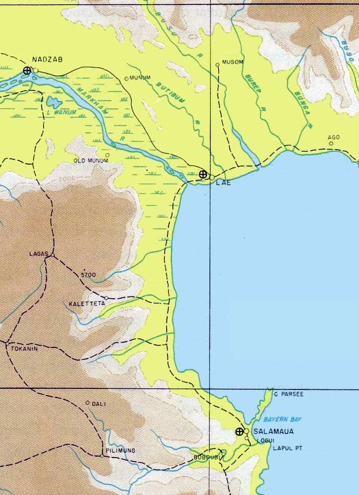 oeste de Lae, en Nueva Guinea, más al norte de Salamaua.