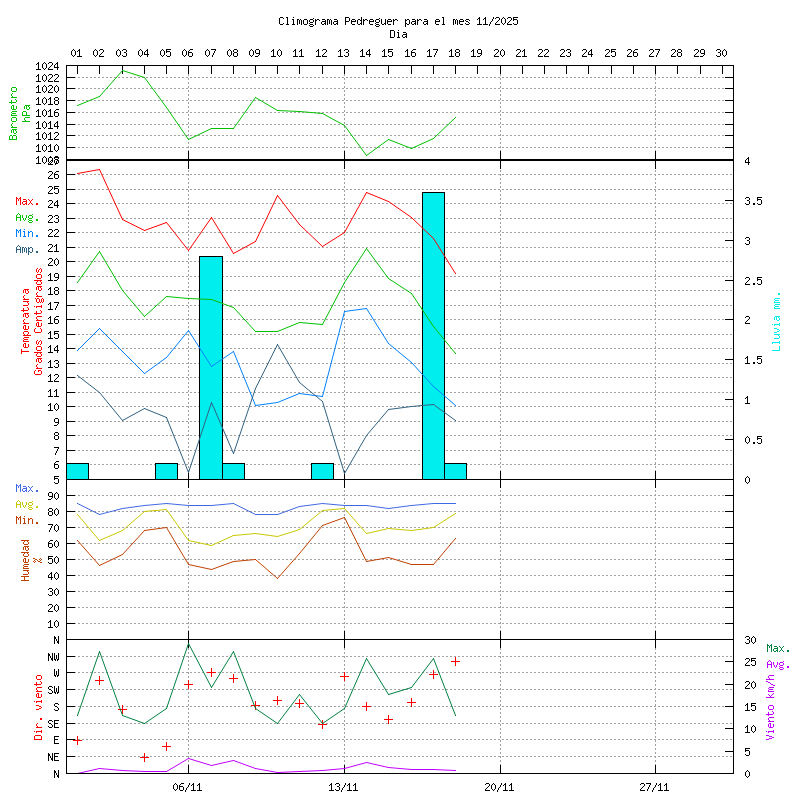 | 2025 | 11 | 26.4 | 10.1 | 17.24 | 70.51 | 1.13 | 7.40 | 601399 | 116.41 | 752 | NOAA | Climograma | Resumen |