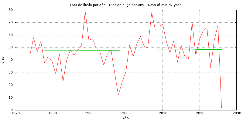 Dies de pluja per any - Días lluvia por año - Rain days by year