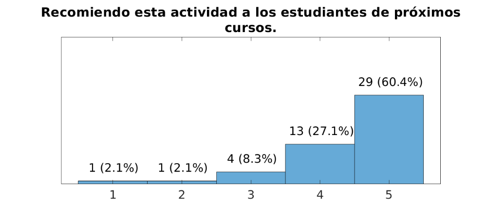 Los resultados de la encuesta de satisfacción y el análisis crítico subsiguiente indican que la actividad ha sido beneficiosa para la formación de los estudiantes.