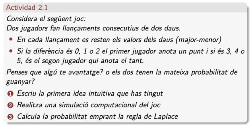 En la sesión 2, se propuso una actividad práctica para aplicar el pensamiento computacional mediante la resolución de un problema de probabilidad. Los estudiantes utilizaron la programación por bloques en Scratch para desarrollar una simulación computacional que permitiera analizar un juego de azar. A continuación, se presenta el enunciado del problema planteado y una imagen de la simulación desarrollada durante la sesión.