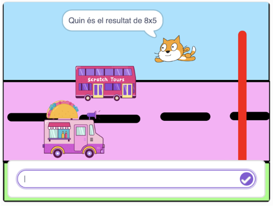 Como actividad de las sesiones de programación en Scratch se solicitó al alumnado la creación de un programa libre (no guiado) para repasar las tablas de multiplicar. A continuación, se muestra una imagen de la ejecución de una de estas aplicaciones, desarrollada por un estudiante.