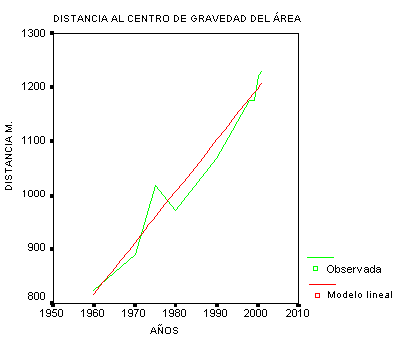 Lo que nos indica que estamos ante un buen modelo del comportamiento de la evolución de la distancia al centro de gravedad del área de los centros de masas de la población.