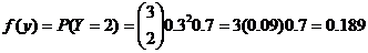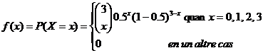 Si la moneda no fóra equilibrada sinó que tinguera una probabilitat de cara, per exemple q = 0.3, la variable que recompta el nombre de cares en una tirada triple Y es distribuiria ara com una binomial Y ~ Bi(3, 0.3) i la probabilitat d’obtenir dues cares valdria: