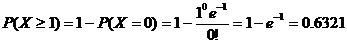 El nombre de telèfons mòbils que interrompen durant una hora de classe segueix una distribució de Poisson de paràmetre l = 1. Calcular la probabilitat que, al llarg d’una hora, sone un telèfon, com a mínim.