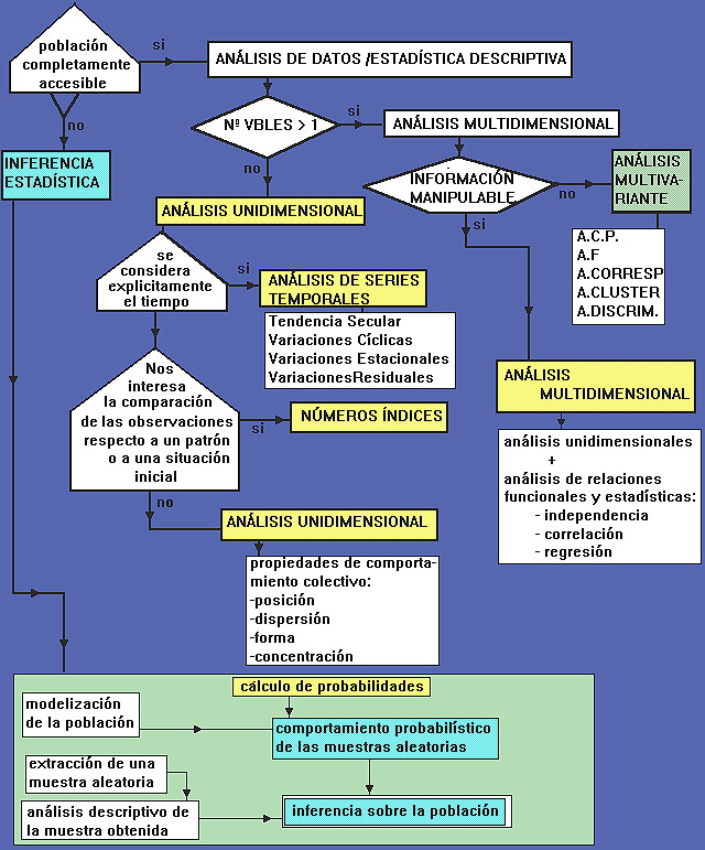 El diagrama de flujo que se expone a continuación , ilustra claramente estos objetivos y relaciones de la estadística, si bien no debemos olvidar que :