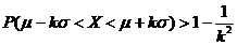 ens permet determinar un interval que incloga la variable amb una cota mínima de probabilitat, sense necessitat de conèixer la distribució de la variable, sempre que existisquen i siguen conegudes la mitjana i la variància. Si volem tenir una probabilitat del 80%, com a mínim, haurem de fixar k tal que: