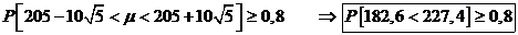 I -3 En una distribución de probabilidad la varianza resulta ser 100 . Se realiza una observación resultando el valor 205 . Determinar un intervalo centrado para la media de dicha distribución con probabilidad superior a 0,8