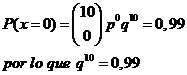 de donde q = 0,99899 luego p =1-q =1-0,99899=0,001 que es mas inferior al 5 por mil