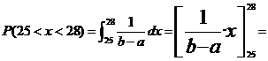 IV -9 Una máquina coloca grapas aleatoriamente en un segmento del folio que va entre los 2 cm. y los 30mm del borde izquierdo de la página . Calcular la probabilidad de que una grapa que ha sido colocada en este momento lo haya sido a una distancia del borde izquierdo de entre 25 y 28 mm .