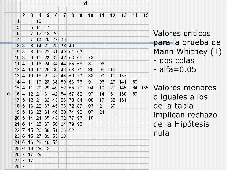 Mann y Whitney: Aplicado sobre un caso que cumpla las condiciones de
