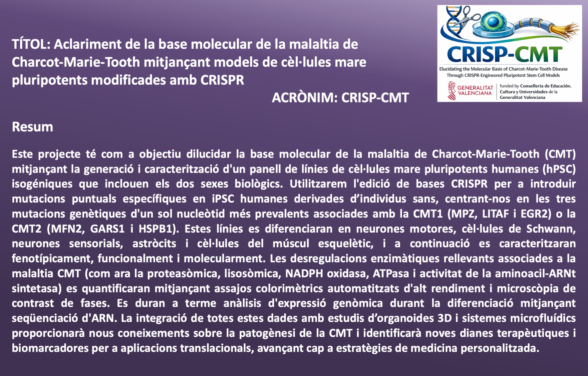 El grup de Neurobiologia Cel·lular combina l'estudi del sistema nerviós des d'una perspectiva cel·lular i molecular amb la investigació bàsica i aplicada de cèl·lules mare pluripotents. El nostre grup té com a objectivo central identificar els mecanismes moleculares i cel·lulars que regulen tant l'homeostasi de les cèl·lulas nervioses en condicions fisiològiques como aquells processos biològics que donen lloc a la manifestació de patologies en els sistemes nerviosos central i perifèric.