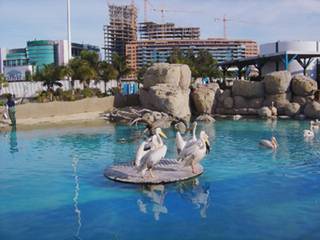 Mediterranean Sea, Polar Seas, Red Sea, Mangroves/Birds and Dolphinarium) in isolated spaces to preserve the required
