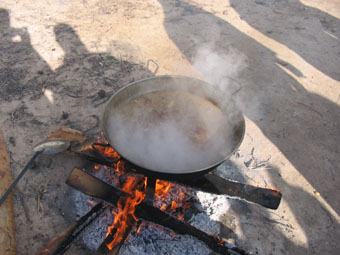 Cuando se van quedando con poca agua, se esclafan cinco huevos y