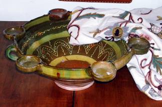 La cuervera es una pieza típica de la alfarería de Chinchilla y La Roda. Su decoración es muy sencilla: racimos de uvas, peras y también la típica custodia de Chinchilla. Las inscripciones son a gusto de la persona que encarga la cuervera. Cuervera. 1ª mitad del siglo XX