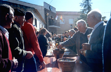los refranes: El día del "mataero", ha sido hasta hace pocos años una gran fiesta en todos nuestros pueblos y, como toda fiesta, ha ido precedida de un gran rito. Al apuntar el día, se preparaban, los "matarifes" y personas allegadas a la familia, que iban a sacrificar el cerdo, alrededor de una gran hoguera en un patio o en la puerta de la calle. Tomaban la primera copa de cazalla para ir calentando el estómago y prepararse para la gran faena. Una vez distribuidas las carnes del cerdo, quedaba todo dispuesto para hacer los embutidos. El convite del "mataero" es esperado