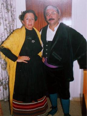 - Camisa blanca de hilo o lino con cuello bordado en algunos casos. - Medias cubiertas con polainas de paño. - Calzón corto, ajustado, de palo oscuro. - Chaleco de paño negro, a veces con adornos multicolores. - Faja negra, que da dos vueltas al cuerpo y termina en flecos. - Chaquetilla de paño negro, sustituida a veces por un blusón de algodón azul. - Pañuelo anudado en la parte de atrás - Zapato negro o abarcas de piel de vaca o burro