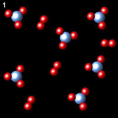 These figures show the evolution of a system, at constant temperature gaseous system, from state 1 (non-equilibrium) to state 2 (equlibrium)