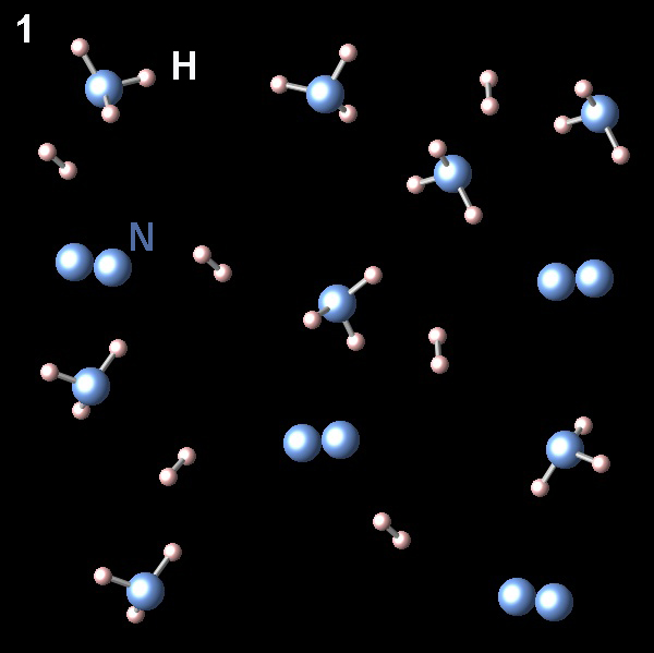 Wrong. In this figure there is a mixture of molecules of two elements, hydrogen H2 and nitrogen N2, with ammonia molecules, NH3.