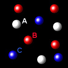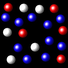Particles corresponding to three gaseous substances A, B and C, are represented by white, red and blue balls respectively. The following figures show representative portions of the three gaseous substances occupying the same volume at the same temperature.