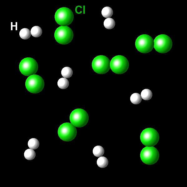 These molecules may react according to the following reaction: H2(g) + Cl2(g) →2HCl(g) p>