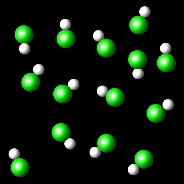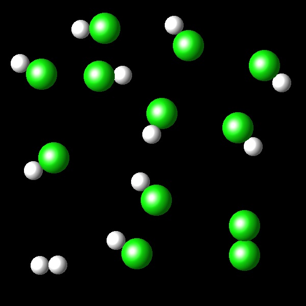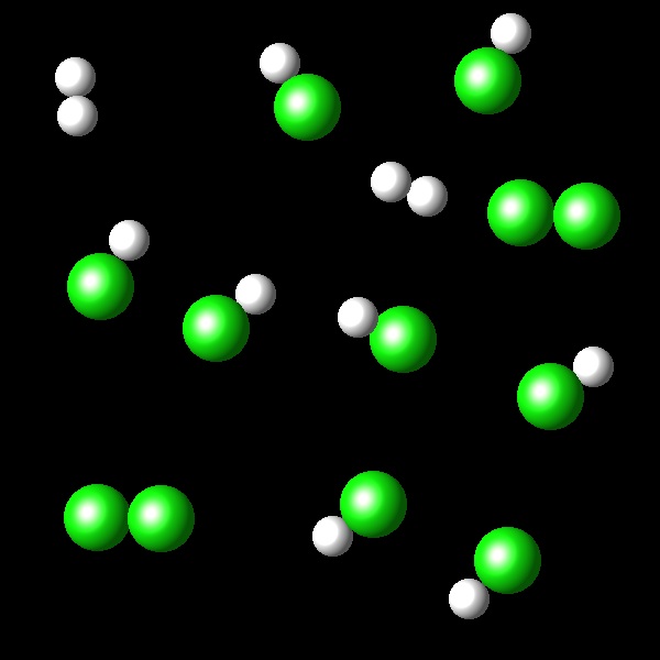 The figure below shows a sample containig molecules of H2 (white) and molecules of Cl2 (green).