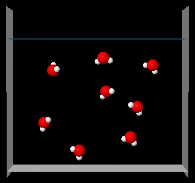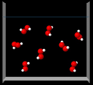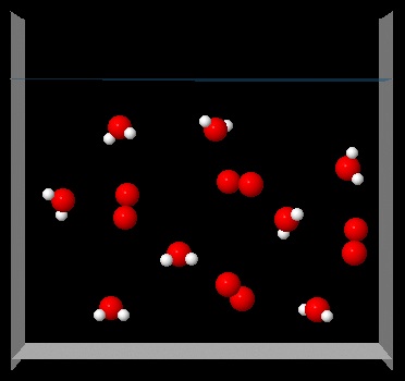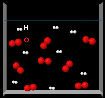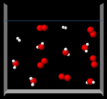 The following figure shows a mixture of two gases, oxygen and hydrogen, represented by red and white spheres respectively.