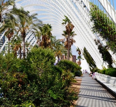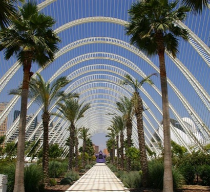Valencia is a quite flat city, which could motivate one to travel around the city by bike along the old Turia river bed. The Turia river bed was deviated from its natural path in the 60's and nowadays the old river bed is a garden 8.5 Km long that connects the Ciudad de las Artes y las Cienciasto the Bioparc Valencia zoo, passing very close to the city center. For those interested in hiring a bicycle, this websitecan be useful.