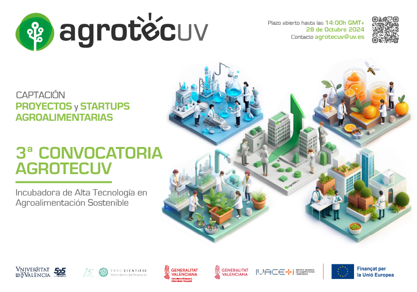 3ª Convocatoria AgrotecUV 19/09/24 3ª Convocatoria de AgrotecUV: programa de incubación de proyectos empresariales de carácter innovador vinculados al sector agroalimentario.[Leer más]