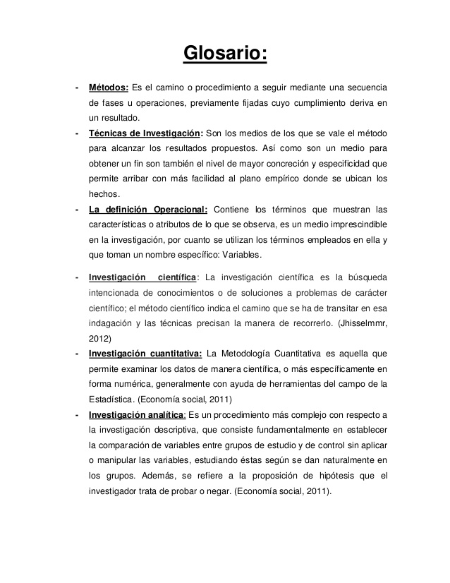El glossari és un element opcional. Afegeix valor al treball. En el glossari es desenvolupa la definició de la terminologia especialitzada que s'utilitza en el treball. És com un breu diccionari de paraules ordenades alfabèticament.