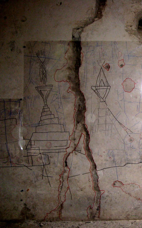 En los muros de los edificios de la Acrópolis se hallaron numerosos grafitos, algunos de ellos de gran calidad e interés histórico, así como vestigios de pintura mural.
