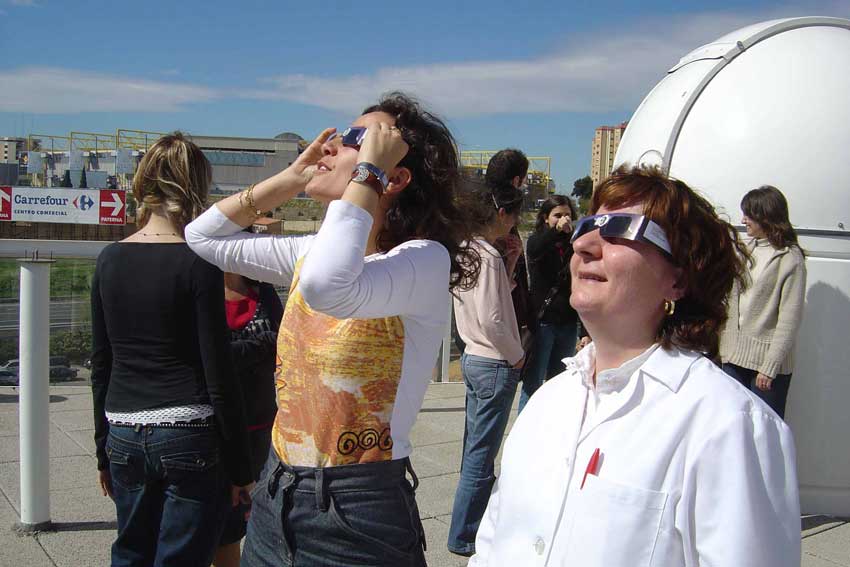 Aquesta vegada l'eclipsi era parcial per a nosaltres. Però era total per altres zones del món. Per això, es van habilitar dues sales multimèdia per veure l’eclipsi total en directe a través de la xarxa informàtica de la Universitat. Una era el Saló de Graus de la Facultat de Matemàtiques amb capacitat per a 90 persones i l’altra l'aula docent de l'Aula d'Astronomia.