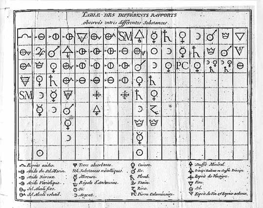 químicas con los símbolos empleados en la época, heredados de