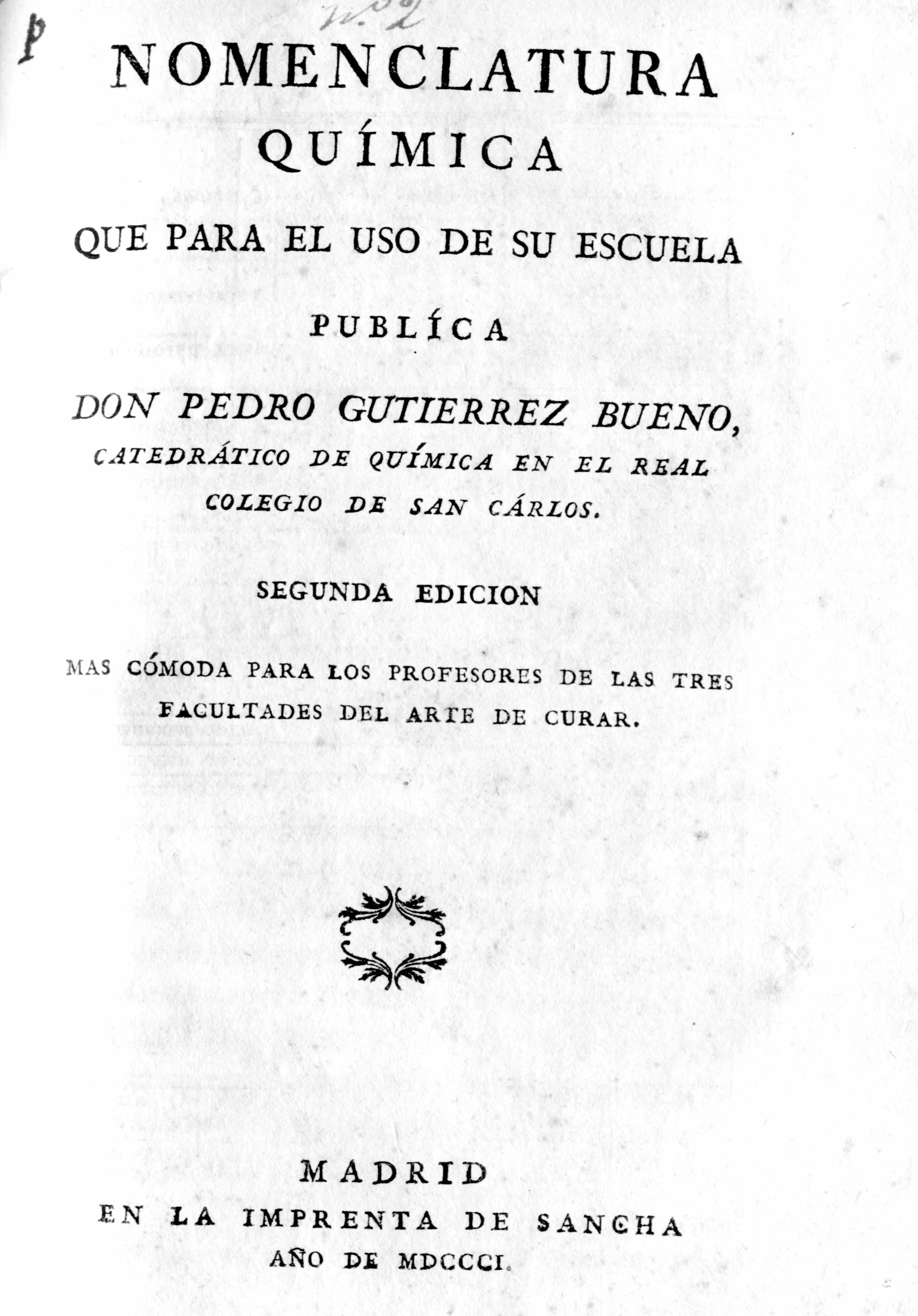 castellana de la nueva terminología química. Fue realizada