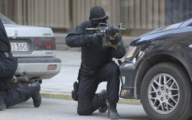 son militares o oficiales del equipo policial S.W.A.T.. Por lo