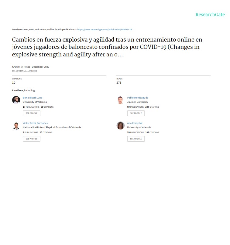 Cambios en fuerza explosiva y agilidad tras un entrenamiento online en jóvenes jugadores de baloncesto confinados por COVID-19