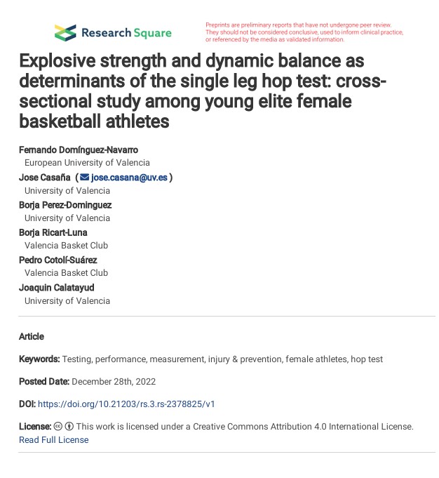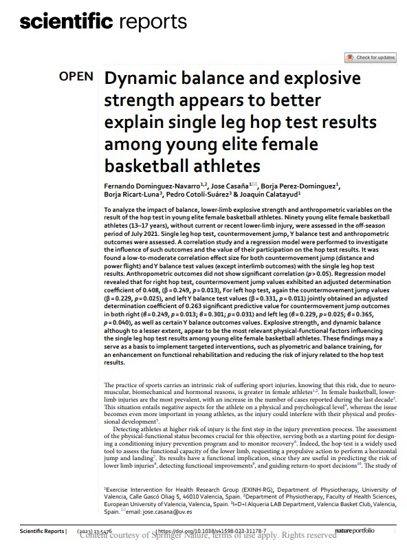 Explosive strength and dynamic balance as determinants of the single leg hop test: cross-sectional study among young elite female basketball athletes