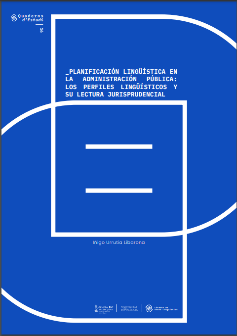 València: Universitat de València , 2021. LlibrePlanificación lingüística en la administración pública: los perfiles lingüísticos y su lectura jurisprudencial, és una publicació pertanyent a la col·lecció Quaderns d'Estudi, de la Càtedra de Drets Lingüístics de la Universitat de València, espai de referència per a l'anàlisi, la investigació i la difusió dels aspectes relacionats amb els drets lingüístics i el multilingüisme. Autor: Iñigo Urrutia Libarona Edició: Càtedra de Drets Lingüístics-Universitat de València.