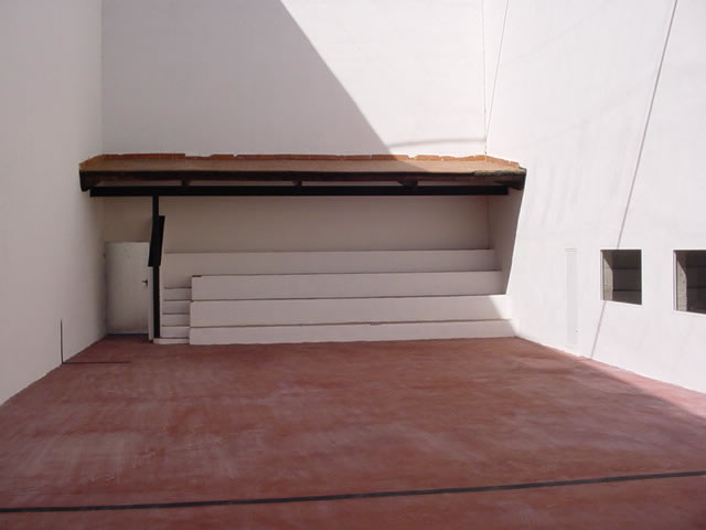 El trinquet amb frares és un recinte tancat de tres parets, amb la paret del frontó amb dos bisells pegats als cantons acabats en forma de caputxó anomenats frares i dues muralles laterals. La paret de darrere compta amb una graderia per al públic i una teulada amb baixada perquè puga fer joc la pilota i jugar al rebot.